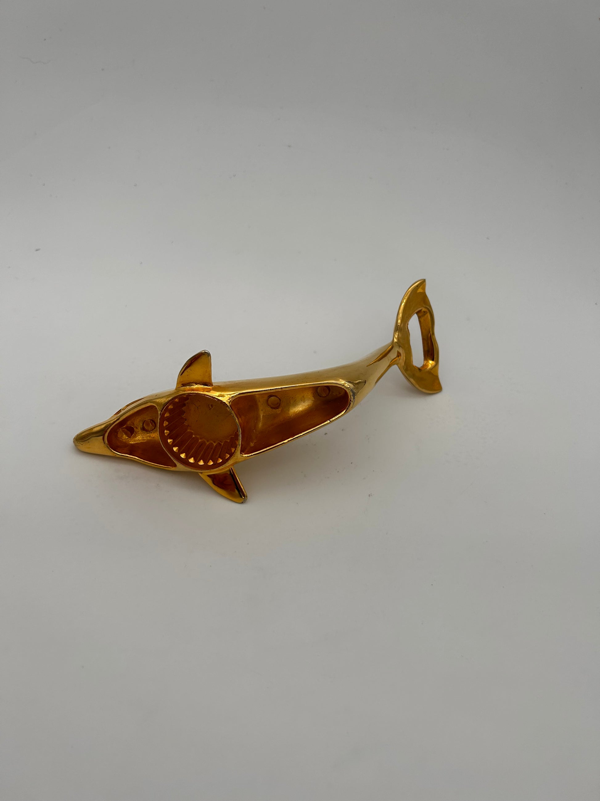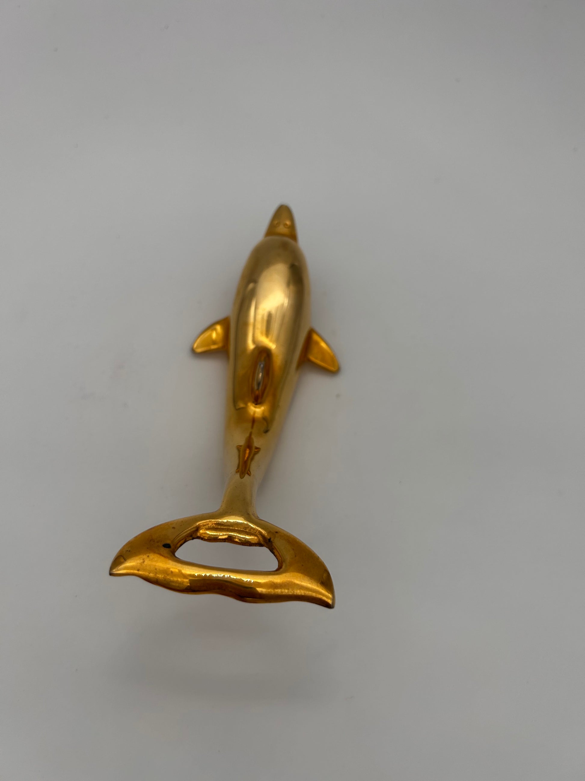Cet ouvre bouteille vintage en laiton doré en forme de dauphin est à la fois pratique et élégant. Avec sa forme unique et son matériau de qualité, il ajoutera une touche de sophistication à toute collection de bar. Ouvrez facilement vos bouteilles avec ce charmant accessoire.