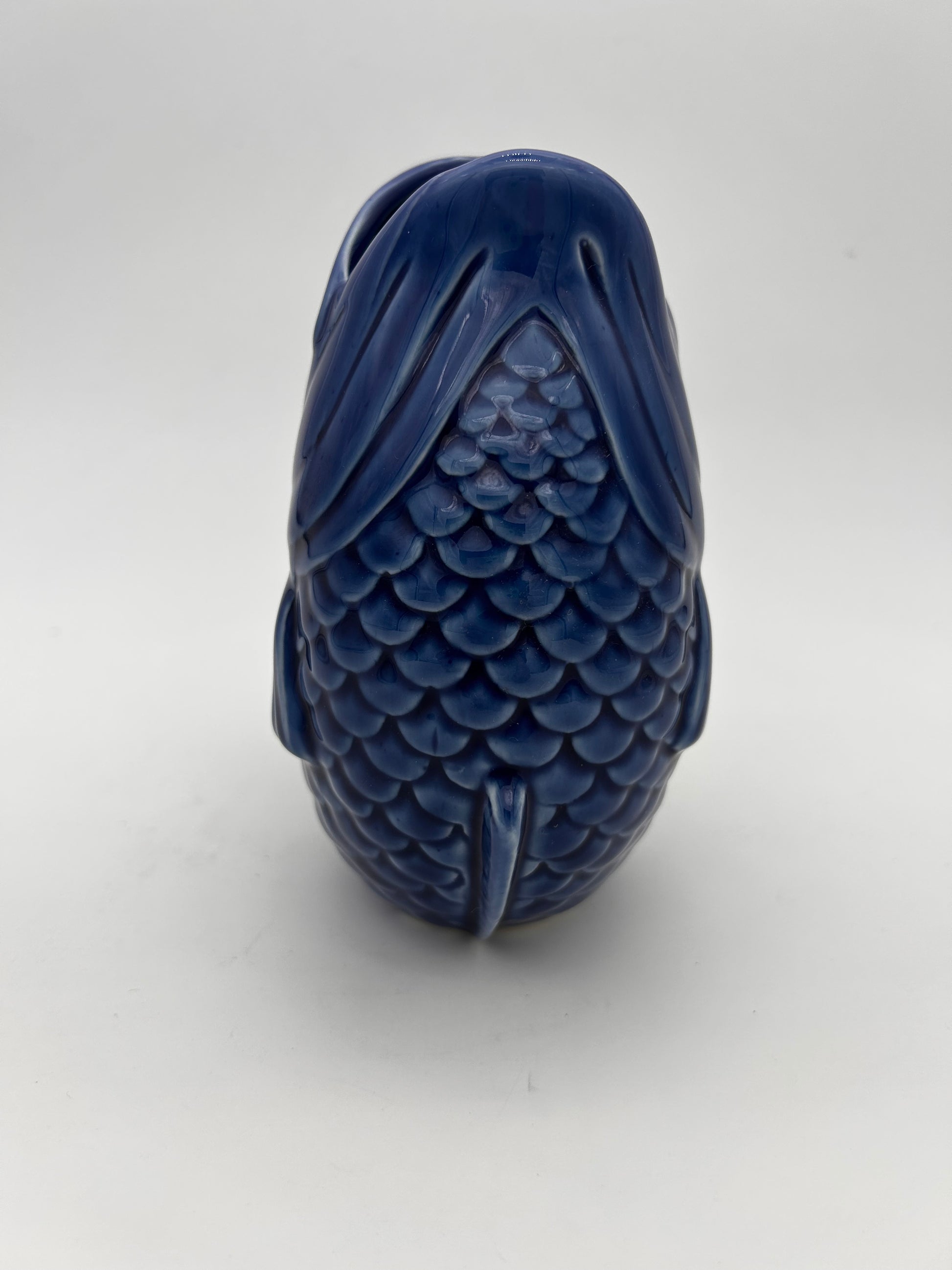 Ce petit pichet en céramique vernissée bleu représente un poisson, ajoutant une touche ludique à votre collection de vaisselle. Fabriqué avec précision et de qualité, ce pichet est parfait pour servir vos boissons préférées lors d'un repas en famille ou entre amis. Profitez de son design unique et de son utilité pratique.