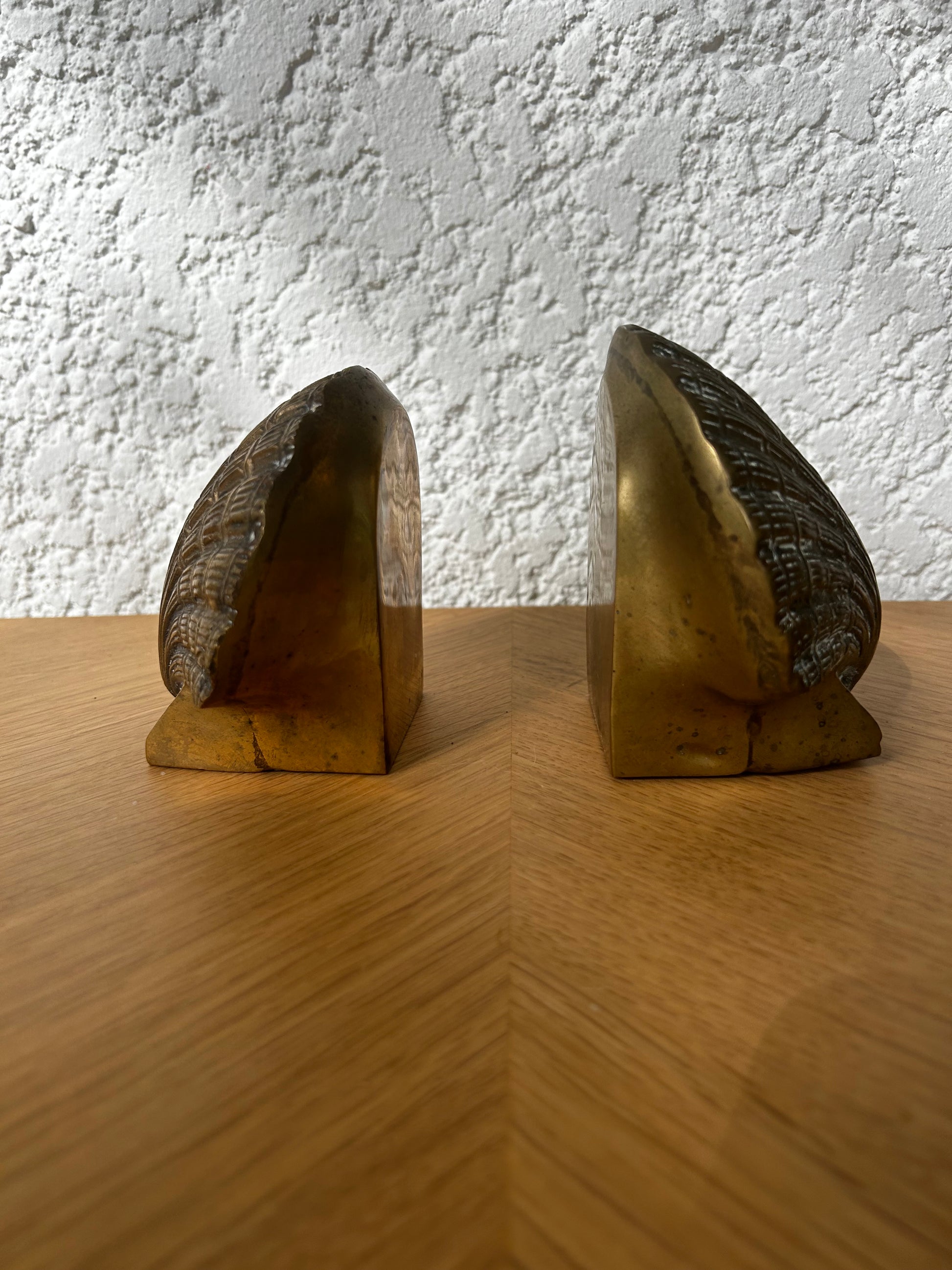 Anciens serres livres en laiton forme coquillage. Laiton légèrement patiné par le temps parfait état général