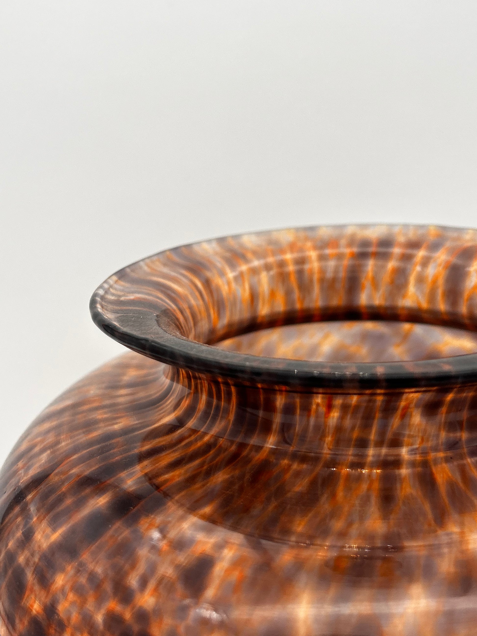 Mettez en valeur votre espace avec ce vase vintage boule léopard. Fabriqué en France et signé de va, ses couleurs écaille de tortue lui donnent une allure élégante. Inspiré des créations Dior, cet objet est un ajout unique à votre collection. En plus de sa beauté, ce vase soufflé bouche apportera une touche de sophistication à votre décoration.