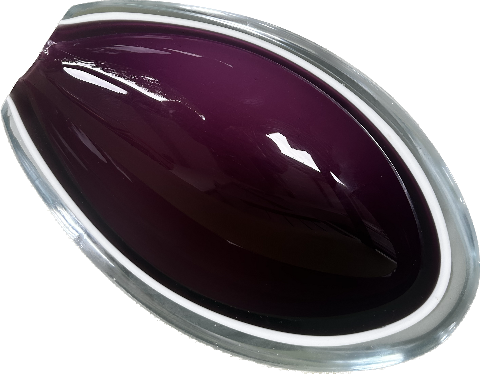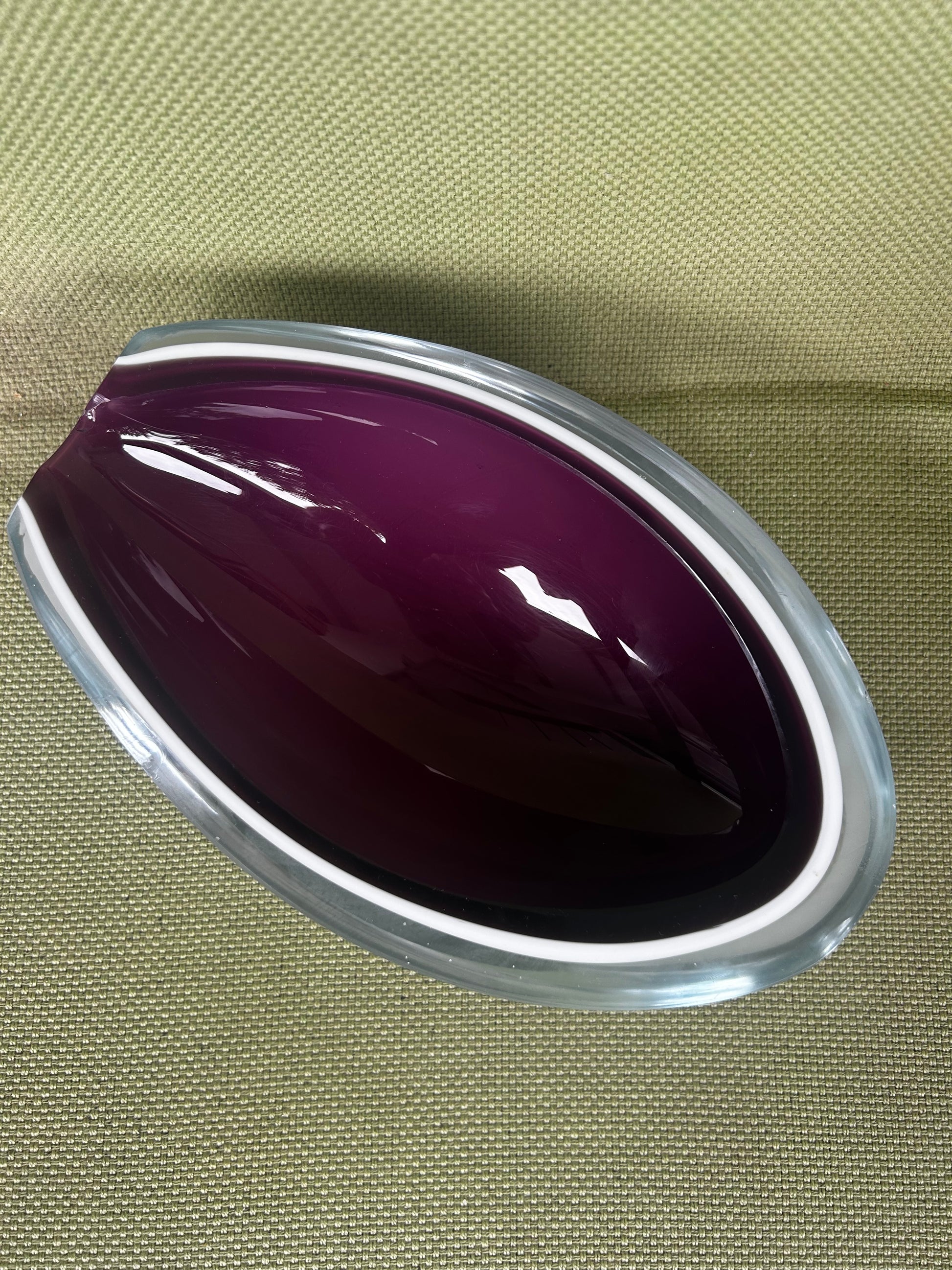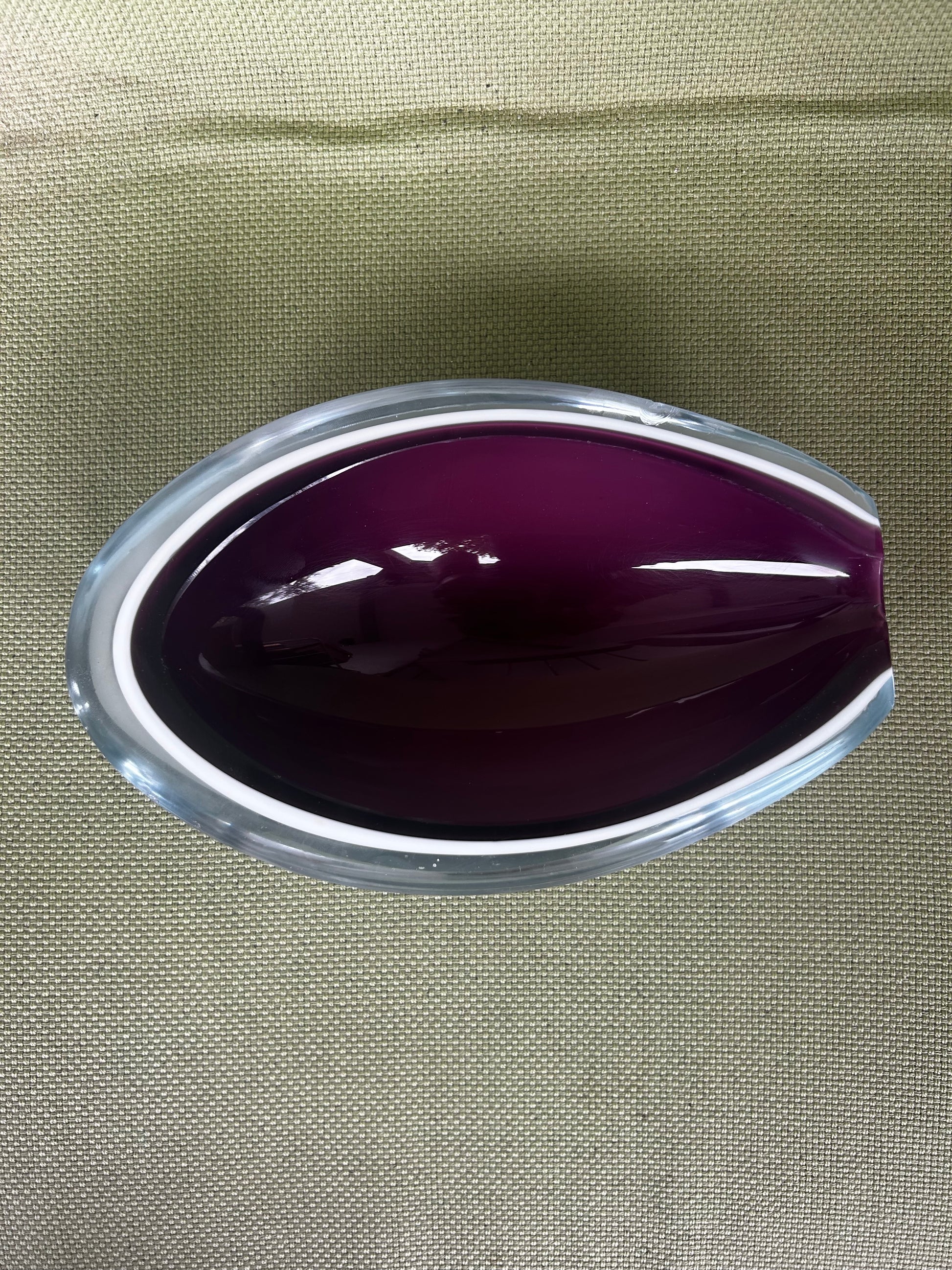 Ancien cendrier vide poche en verre de Murano violet et blanc. Un très léger impact et dès micro rayures sur le socle invisibles une fois posé . Modèle rare